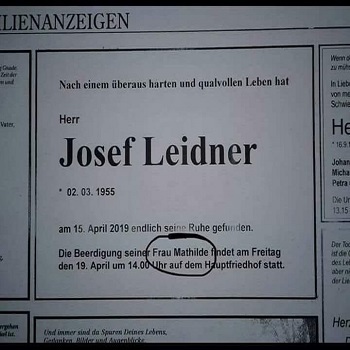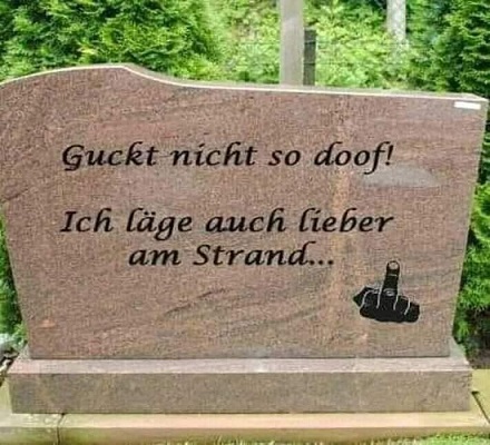 Um die Zahl der Menschen auf Friedhöfen zu erhöhen und dadurch auch Platz zu sparen, wurde die Urnenbestattung erfunden. Dabei wird statt eines Sargs zum gleichen Preis eine Urne beigesetzt, was die Einnahmen beträchtlich erhöht, weil in dem Platz eines Sarges sehr viele Urnen passen. Ob die Verstorbenen ihre Urne mit nach Hause nehmen können, wird derzeit in einigen deutschen Städten diskutiert. Eine Beerdigung ist eine Feier und somit auch eine super Gelegenheit auch mal Alkohol zu trinken, ohne dabei gut drauf zu sein. Sie findet meist statt, wenn einer aus der Familie den Löffel abgegeben hat. Mit Löffel-Abgeben ist die Weitergabe des teuren Silberbestecks an die nächste Generation gemeint. Dies ist auch bekannt als Zack-Bum-Weg-Nummer. Nach der Zack-Bum-Weg-Nummer muss man sich erst eine Beerdigung mieten. Denn das Zeug, was es dort zu saufen gibt, ist logischerweise nicht umsonst. Die Tradition während einer Trauer zu saufen, stammt ursprünglich von Magdalena Kochslowski, die um 1945 um ihren Alten vor einem Grabstein geheult hat. Sie nahm aus ihrer rechten Jackentasche Wodkapullen raus und trank ihren Schmerz beiseite. Bis sie auch keine Schmerzen mehr hatte und auf ihren eigenen Alten kippte. Somit waren es gleich zwei Zack-Bum-Weg-Nummern auf einmal. Um eine Einladung zu erhalten muss man erst einen finden, der bereit ist, zu sterben. Meist bringt man auch Familienmitglieder in der Familie um, die man nicht mehr so braucht. Zum Beispiel die Schwiegermutter, was aber den Nachteil hat, dass auf ihre Beerdigung niemand kommen will. Da Oma viel Erbe verschenkt, nach ihrem Tod, weiß man eigentlich schon, wer als nächstes dran ist. Nachdem man dann eine Person ins Jenseits befördert hat, braucht man erst einmal Leute die auf die Beerdigung kommen wollen. Bringt man also ein Arschloch ohne Freunde um, so wird es keine Party mit Unmengen von Leuten. Traditionell wird in einer Kirche der Sarg nochmal abgestellt, damit die Leute sich mit abgesetzten Brillen die Tränen aus den Augen reiben können. Trotz der Leiche steht ein anderer im Vordergrund. Der Herr "Seht-mich-an" Pfarrer mit seinem weißen Gewand, der eine 3-stündige Rede darüber hält, wie toll der Mensch war, und wie schön und bla-bla. Dabei steht der Pfarrer völlig auf der falschen Spur, weil er die Leiche gar nicht kennt. Auch wenn Osama Bin Laden im Sarg liegen würde - der Pfarrer würde tatsächlich noch behaupten dass ein sehr guter Mensch von uns gegangen ist. Am liebsten würde man zum Pfarrer gehen und sagen: "Was hast du gesagt, was der ist, ein guter Mensch? Entweder du kennst den Tünnes der da unter der Erde liegt oder du lässt es bleiben." - Genau das wär die richtige Antwort. Typisch für die Wegschleppsituation ist der schauspielerische Möchtegerntrauergang, für die Leute die froh sind, das der Kerl weg ist. Man geht nämlich ganz anders wenn man von Herzen traurig ist. Da bricht man zusammen, bekommt Heulattacken, fällt um, geht als Abwechslung wieder in die Kirche. Dieses Hinterhergehen mit gesenktem Kopf, was man oft bei Kinder sieht, ist daher nur gezwungen bzw. geheuchelt. Wenn sich alle vor dem Loch versammelt haben, wird traditionell der Sarg in das Loch befördert. Wenn die Seile reißen, kann man auf Nummer sicher gehen, dass der Verstorbene auch wirklich jetzt tot ist. Es gibt schließlich viele Leute die im Sarg wieder aufwachen, das sollte man nicht unterschätzen. Nach einer halben Stunde Heulpause, liest dann der als Pinguin bekleidete Pfarrer eine Geschichte vor. Zum Beispiel: "Was hat der Tünnes der da im Sarg liegt zu letzt gegessen, und wo krieg ich das...oder auch "Wie ist der Unfall zustande gekommen, und war ich vielleicht mit schuld..."... Zu guter letzt wirft dann jeder eine Rose in das Grab, und weint, weil er die Rose eigentlich selber behalten wollte. Dann nimmt man eine Schaufel und schmeißt dem Toten die Erde auf seinen Sarg, zur letzten Ehre. Es gibt Menschen die hören gar nicht mehr auf, den Sarg zuzuschmeißen. Das ist aber nur wenn sich eine Schwiegermutter im Sarg befindet. Natürlich kann man einen Toten Menschen ganz normal entsorgen. Das heißt Leiche in Sarg legen, Sarg auf Friedhof bringen und dort vergraben. Ersatzweise kann man den Sarg mit Leiche auch verbrennen und die Asche dann in eine Urne stecken und diese dann vergraben. Aber darüber hinaus gibt es aber noch diverse andere Möglichkeiten, einen Toten loszuwerden. Eine Öko-Bestattung ist eine Bestattungsart, bei welcher der Leichnam eines Menschen auf den Kompost geworfen wird und dadurch in einem langsamen Zerfall der Erde wiedergegeben wird. Diese Art der Bestattung spart viel Geld und wäre Ideal für die Schwiegermutter des Autors. Eine Seebestattung ist wie die Öko-Bestattung eine der günstigeren Formen der Bestattung, da auch hier die "Weiterverarbeitung" der Leiche der Natur überlassen wird. Hier wird ein Toter nicht auf einem Komposthaufen, sondern in ein Gewässer geworfen. Den Rest erledigen dann meist die Haie, Krokodile oder sonstige Tiere. Als Bestattungsunternehmer würde ich die Verstorbenen verbrennen, die Asche ins Kloo schütten und abziehen. Die Asche kommt ja irgendwann im Meer an, also eine durchaus günstige Seebestattung.